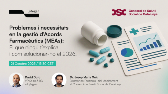 El Consorci de Salut i Social de Catalunya (CSC) organitza, conjuntament amb Lyfegen, el webinar "Problemes i necessitats en la gestió d'Acords Farmacèutics (MEAs): el que ningú t'explica i com solucionar-ho el 2026", que tindrà lloc el 21 d'octubre, a les 15.30 h.
