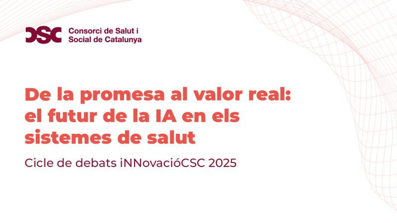 El Consorci de Salut i Social de Catalunya (CSC) organitza un nou debat d'#iNNovacióCSC, "De la promesa al valor real: el futur de la IA en els sistemes de salut", que tindrà lloc el dimecres 26 de novembre, a les 12 h, a la seu de l'entitat.