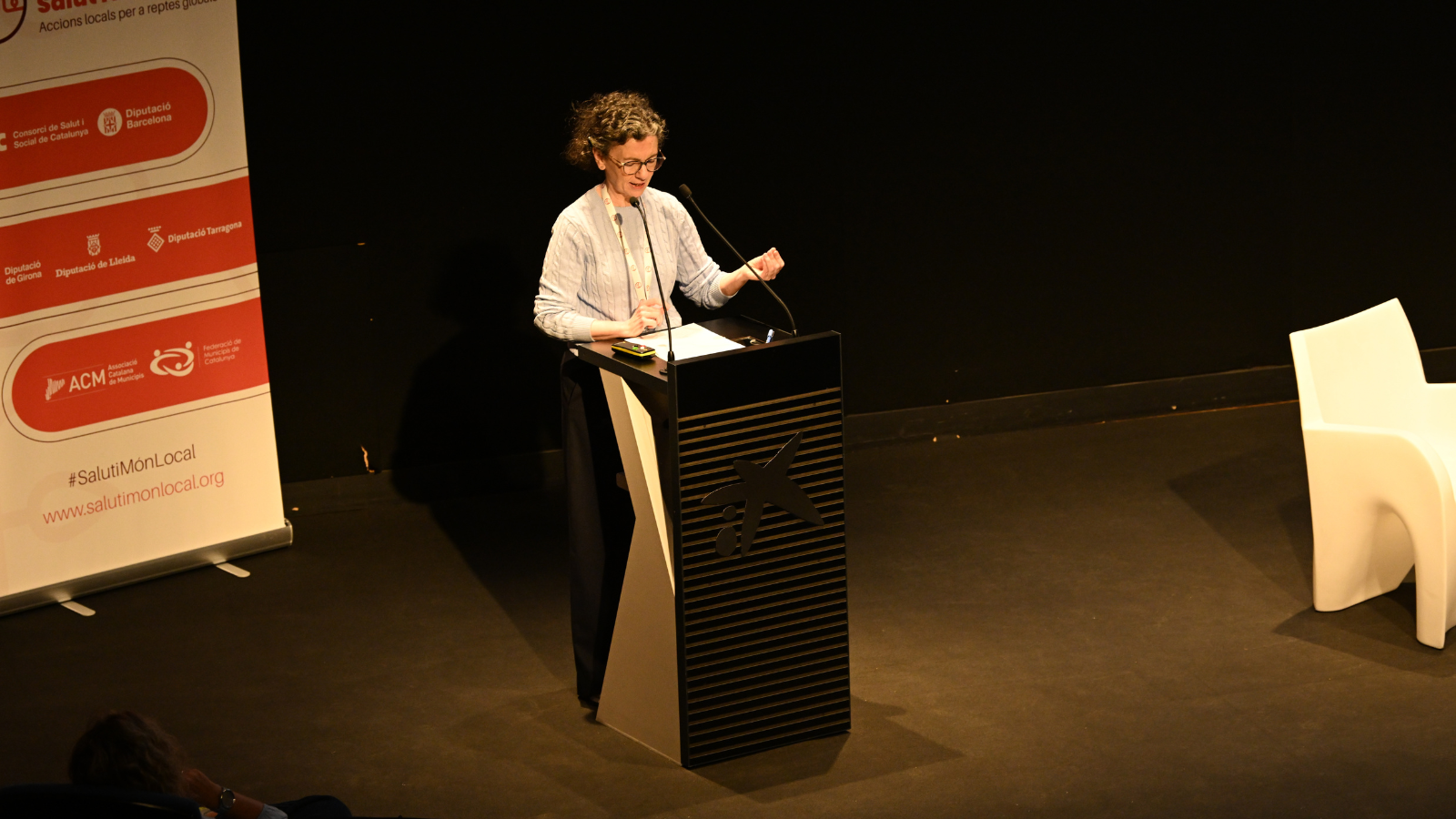 Davant un auditori ple de gom a gom, Manel del Castillo va oferir la conferència titulada "Reptes del sistema de salut i social des del món local", després de la presentació d'Esteve Fernández, secretari de Salut Pública de la Generalitat de Catalunya.