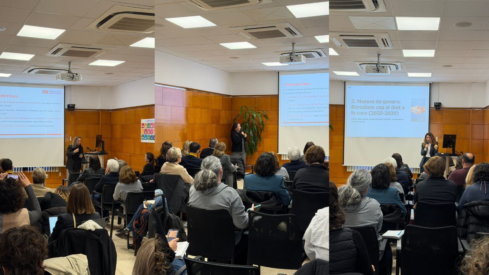 Entre les mesures implementades, Villanueva ha parlat de l'Espai Barcelona cuida, "el centre de referència de les cures de la ciutat, que ofereix serveis d'informació i orientació a les persones cuidadores i d'assessorament i acompanyament jurídic laboral". També ha explicat en què consisteix la iniciativa de la Targeta Cuidadora, "un instrument per reconèixer i donar visibilitat a la tasca de les perones cuidadores, i per acompanyar-les i facilitar la seva activitat cuidadora i contribuir a la millora del seu benestar".