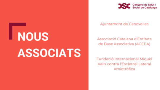 El Consorcio de Salud y Social de Cataluña (CSC) tiene tres nuevos asociados: el Ayuntamiento de Canovelles, la Asociación Catalana de Entidades de Base Asociativa (ACEBA), y la Fundación Internacional Miquel Valls contra la Esclerosis Lateral Amiotrófica.