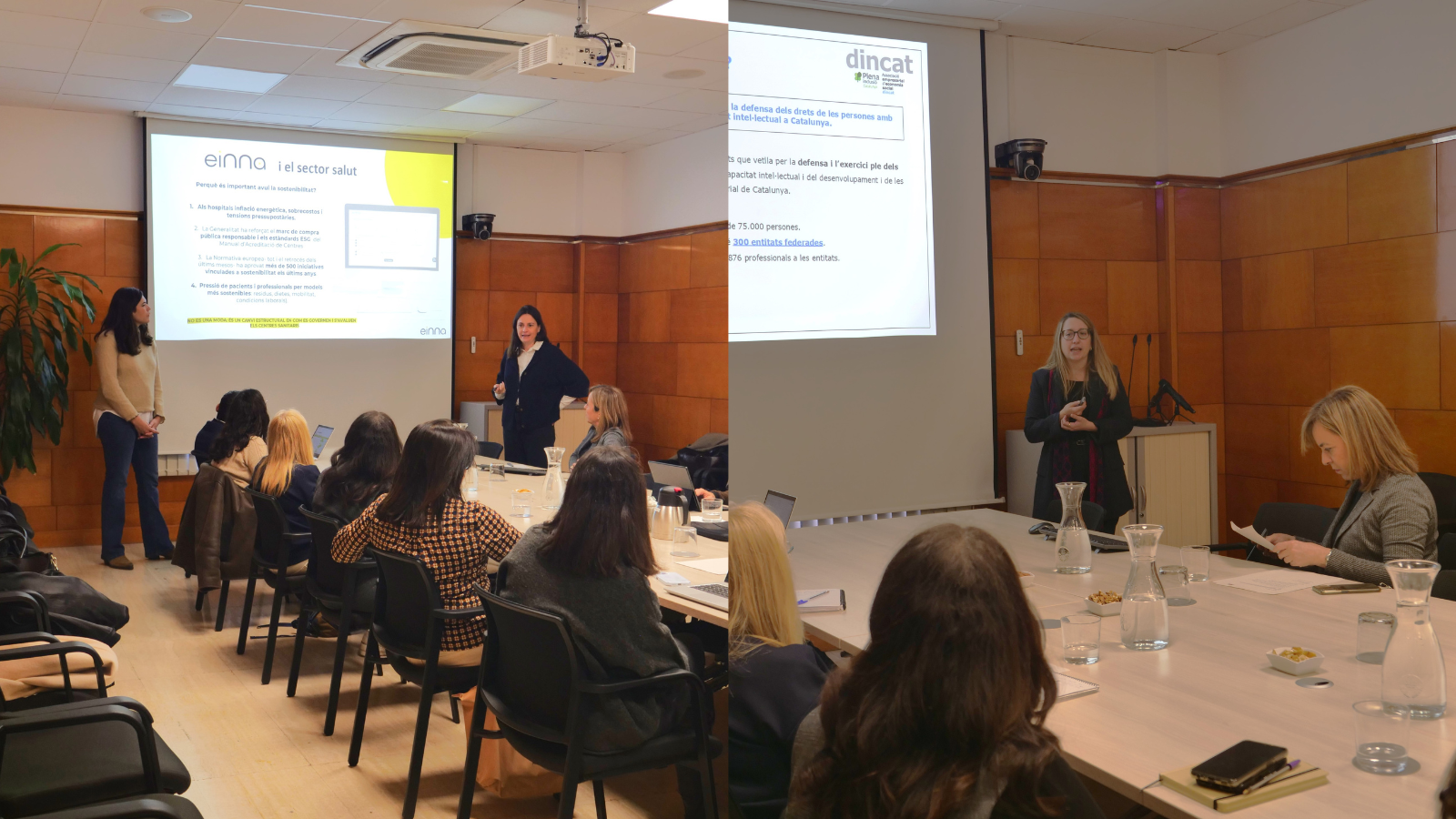 Dincat es la federación que agrupa casi 300 entidades que defienden los derechos de más de las personas con discapacidad intelectual en Cataluña y de sus familias. Imma Rosell, referente del Área de Inserción Sociolaboral, habló de los Centros Especiales de Trabajo (CETs), empresas que aseguran un trabajo remunerado a las personas con discapacidad y garantizan su integración laboral.