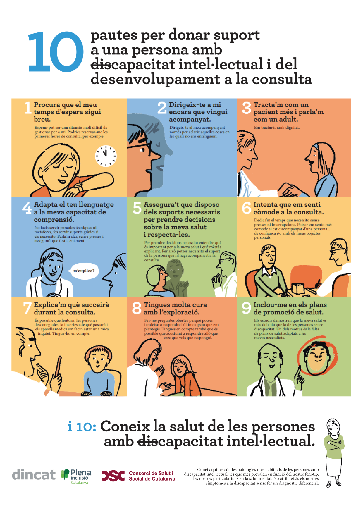 Amb motiu del Dia Internacional de la Discapacitat, que se celebra avui, 3 de desembre, des del CSC hem fet difusió, entre els centres associats, del decàleg de bones pràctiques en l'àmbit de l'atenció sanitària elaborat per Dincat, entitat amb la qual col·laborem. Tal com assenyala el manifest "Això sí que és per a mi", que va fer públic ahir aquesta entitat, el desconeixement i la discriminació de les persones amb discapacitat intel·lectual i del desenvolupament encara estan presents al sector sanitari.
