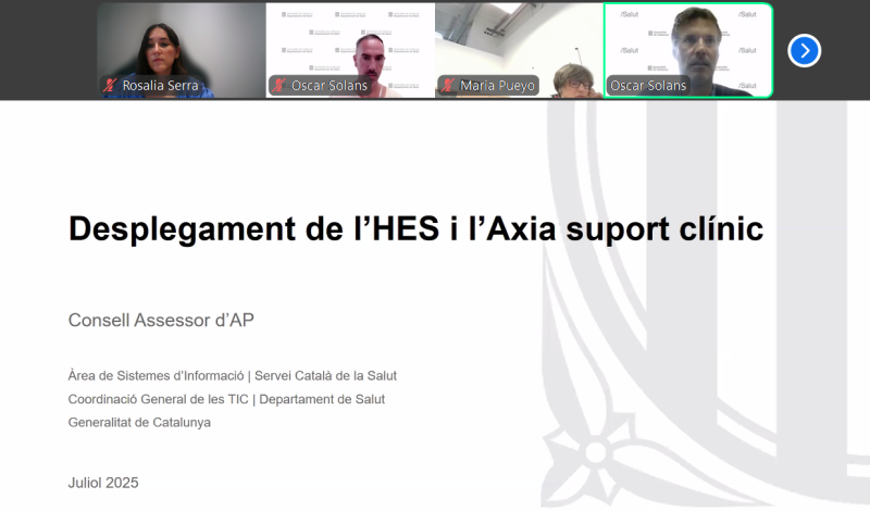 Durant la sessió, que va anar a càrrec d'Òscar Solans, de l'Àrea de Sistemes d'Informació del CatSalut, es va destacar l'AXIA, un servei que permet utilitzar l'assistent de suport clínic per al professional assistencial i que anirà incorporant progressivament múltiples agents basats en intel·ligència artificial destinats a ajudar els professionals en el seu dia a dia. Segons va explicar Solans, aquesta eina incorporarà diferents agents d'IA que poden ser d'utilitat en la preconsulta, durant la consulta i en la postconsulta.